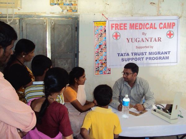 Supported by Sir Dorabji Tata Trust,Yugantar through this project provided a platform to deliver certain services like health,social security and financial aid to the inter-state migrant workers working the industrial area of Katedan. As part of these services, health camps in association with Red Cross were conducted at different pockets of the area catering to hundreds of migrants.In order to facilitate their access to social security benefits, Yugantar helped them to get access to pensions,ESI cards and Aadhar cards.Financial literacy programs were conducted to the migrant workers and as part of this service financial diaries were given where they can effectively manage their expenses.Much before the Jan Dhan Yojana program of the central government, Yugantar was helping these workers to open no frills accounts without any hassles.A skill development center in association with Mahila Sanatkar was opened to help the migrant women to learn stitching and tailoring which would enhance their earning ability.